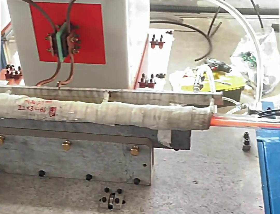 您现在看到的是使用高频焊接机对铝板进行对焊的现场演示,验证高频机与铝板、钎料或者说焊料的配合度,焊接以后的强度是否达到技术要求